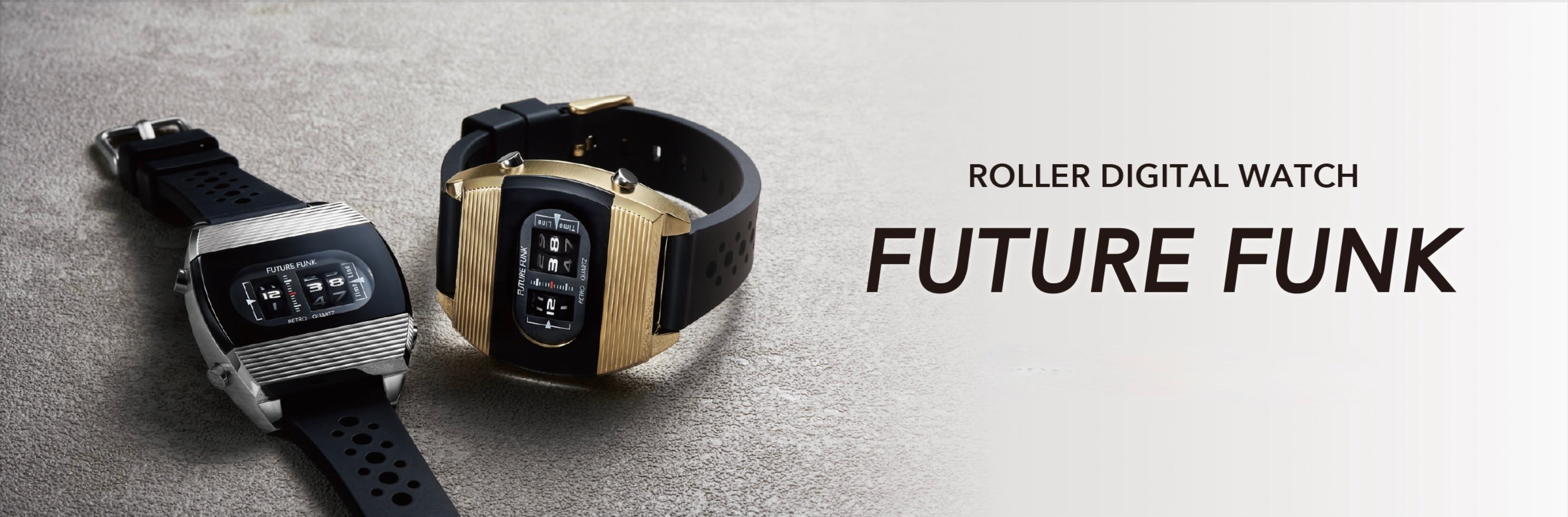 “FUTURE FUNK” is a popular roller digital watch with a space age design that was popular in the 1970s.